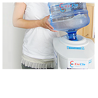 クリクラボトルは、取手もついているので、女性でも簡単に交換できます。形状も保管しやすく、ペットボトルのように転倒の恐れもありません。