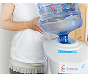 クリクラボトルは、取手もついているので、女性でも簡単に交換できます。形状も保管しやすく、ペットボトルのように転倒の恐れもありません。